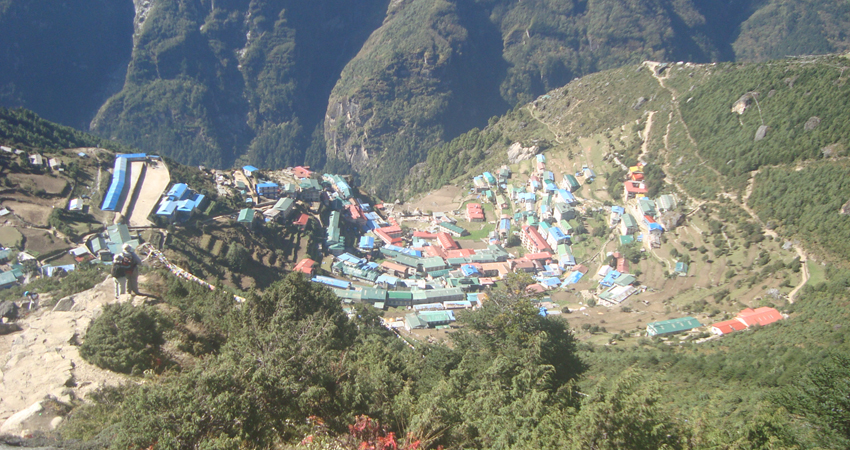 Day 12: Trek from Namche Bazaar to Lukla (2840 m), 7/8 hour walk. O/ Night at Guest House.