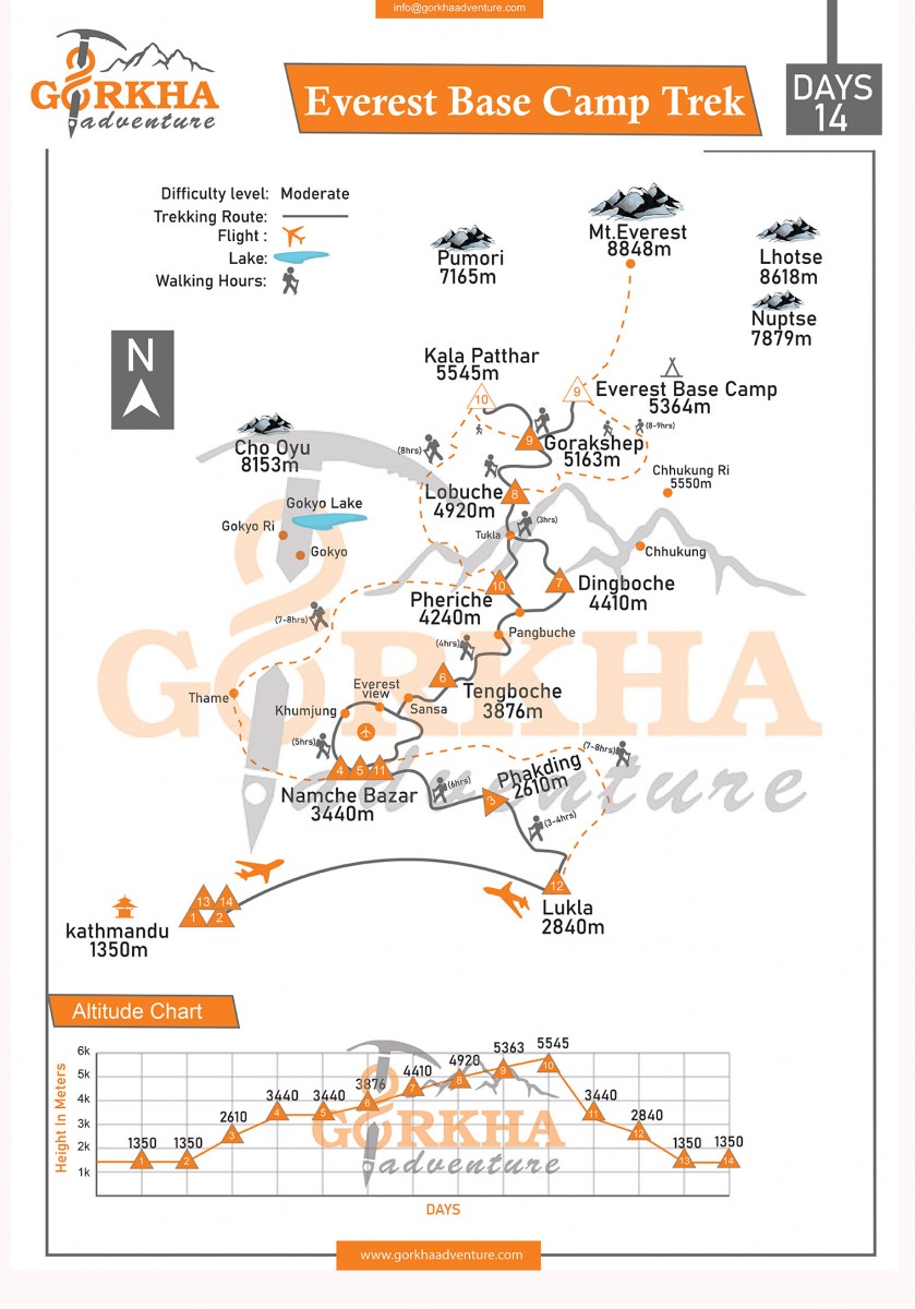 - Down jacket, sleeping bag, duffel bag, t-shirt, and trekking map by Gorkha Adventure if required (down jacket and sleeping bag are to be returned after finished the trip).