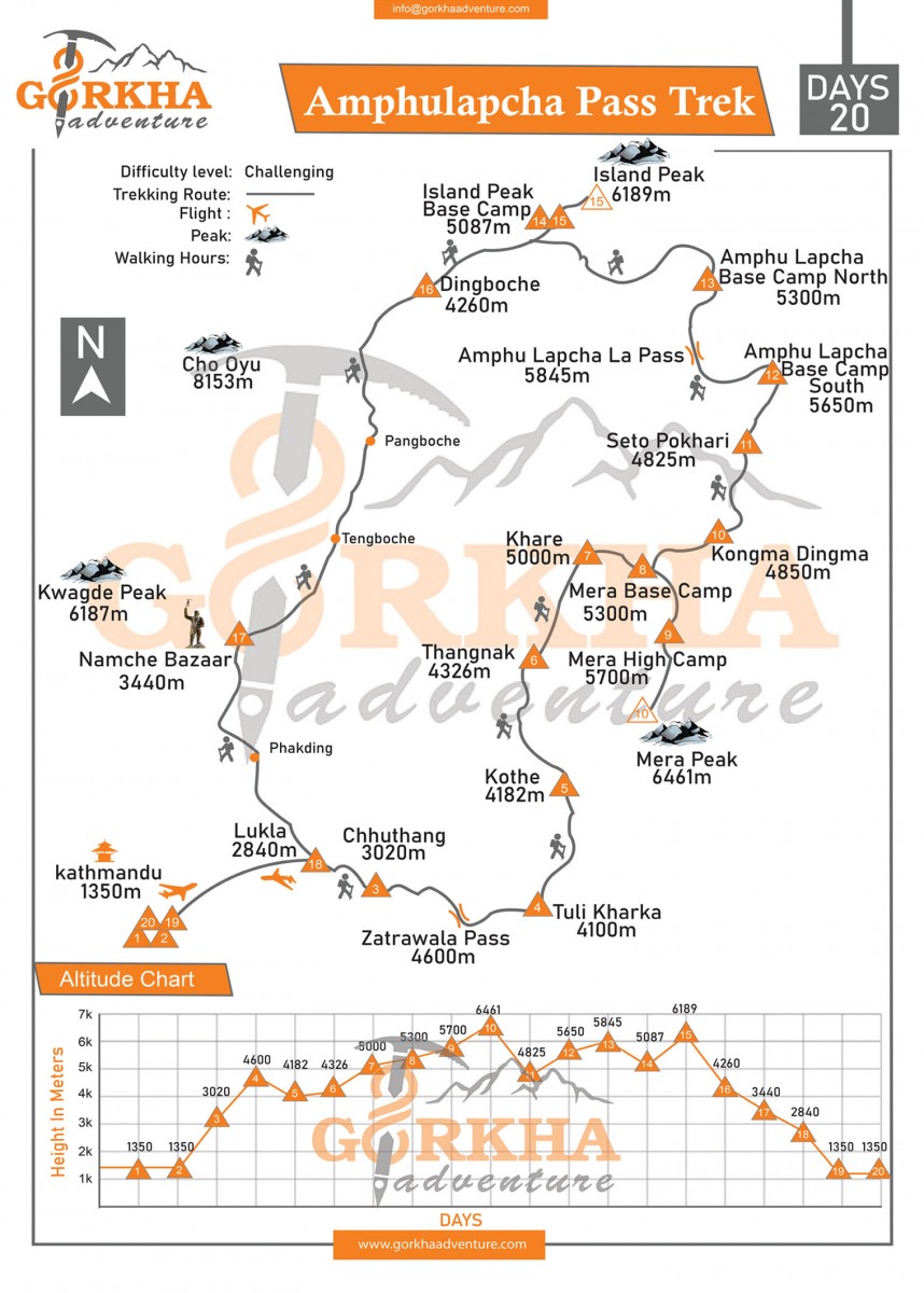 - Duffle bag by Gorkha Adventure (if required sleeping bag and Down Jacket by hire, while finished this trip,then return to office).